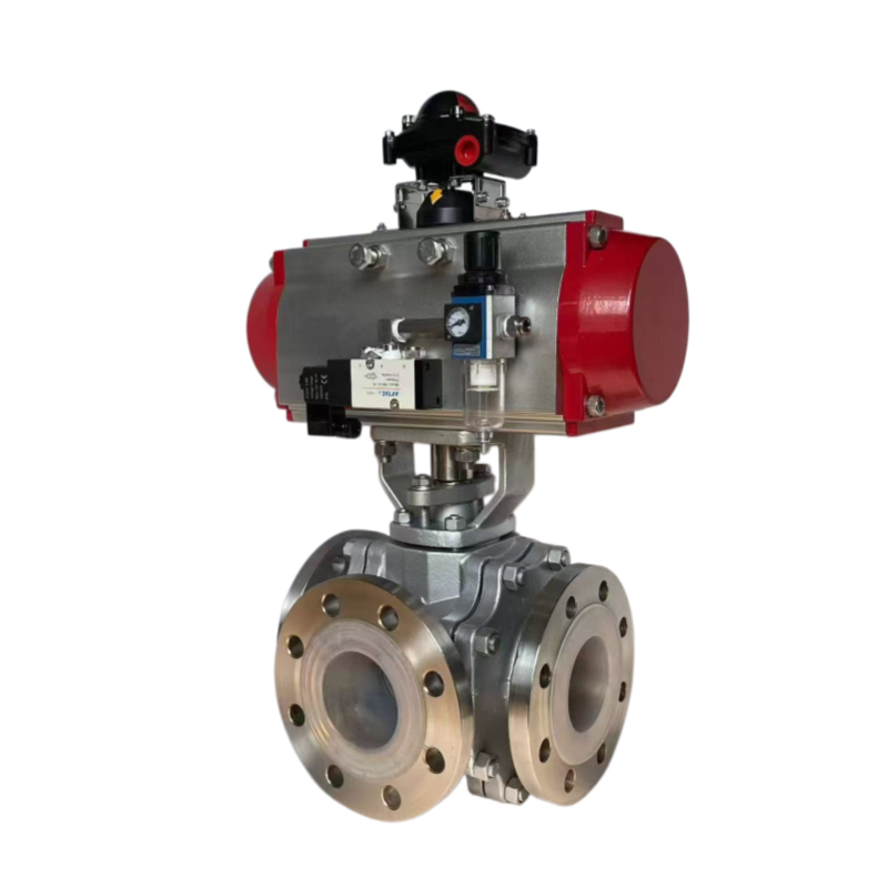 气动衬氟三通法兰球阀是一款融合气动控制、衬氟防腐与三通流道设计的工业阀门,主要用于管道系统中介质的流向切换、分流与合流控制。